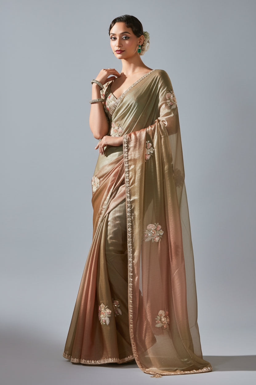 Fabric: Organza, Tissue Work: Embroidery, Lace