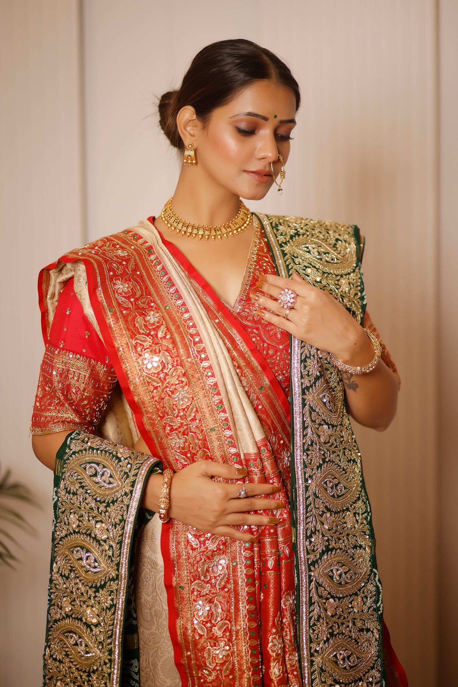 Blouse and Green Saree : Shown in the picture is for photoshoot purpose only