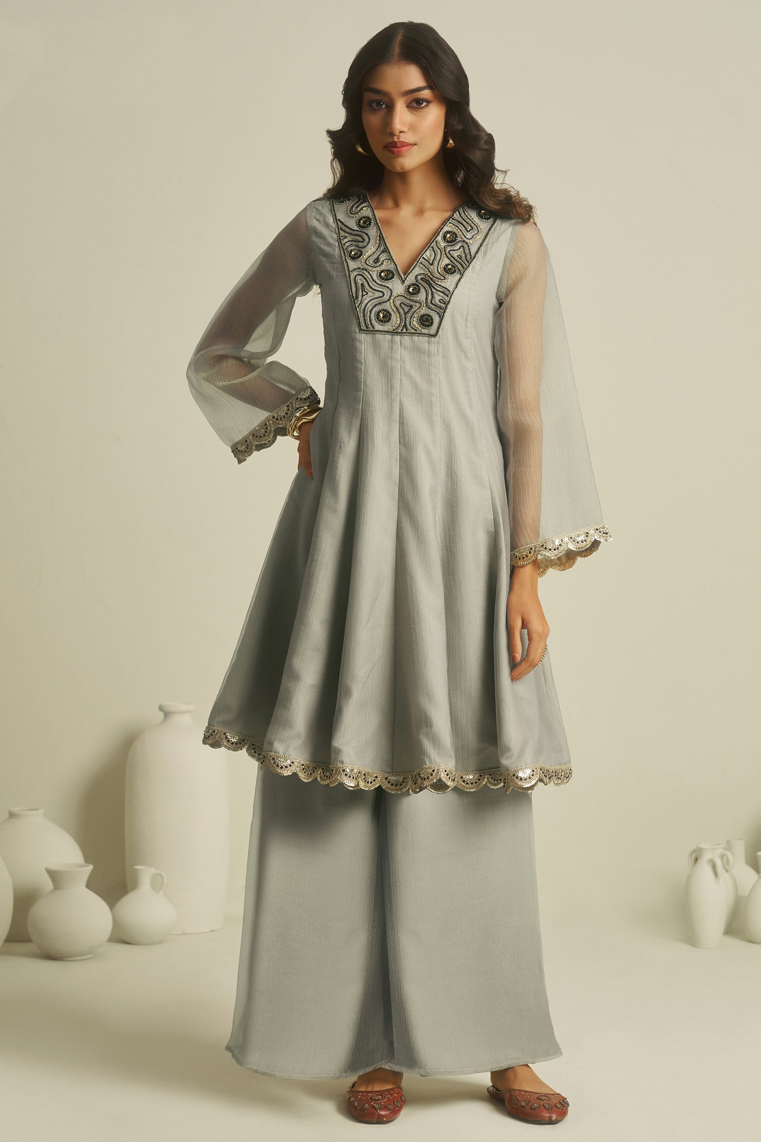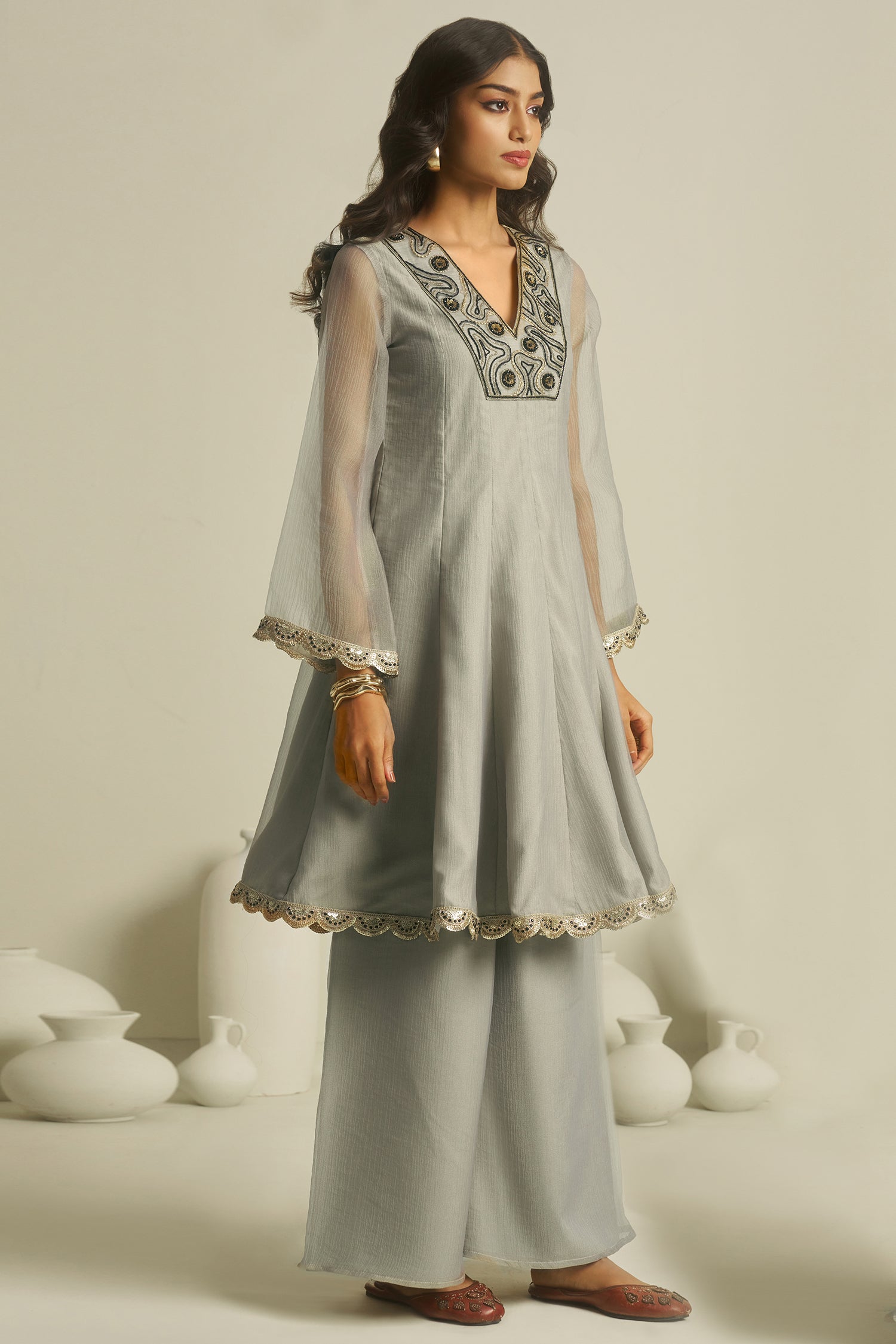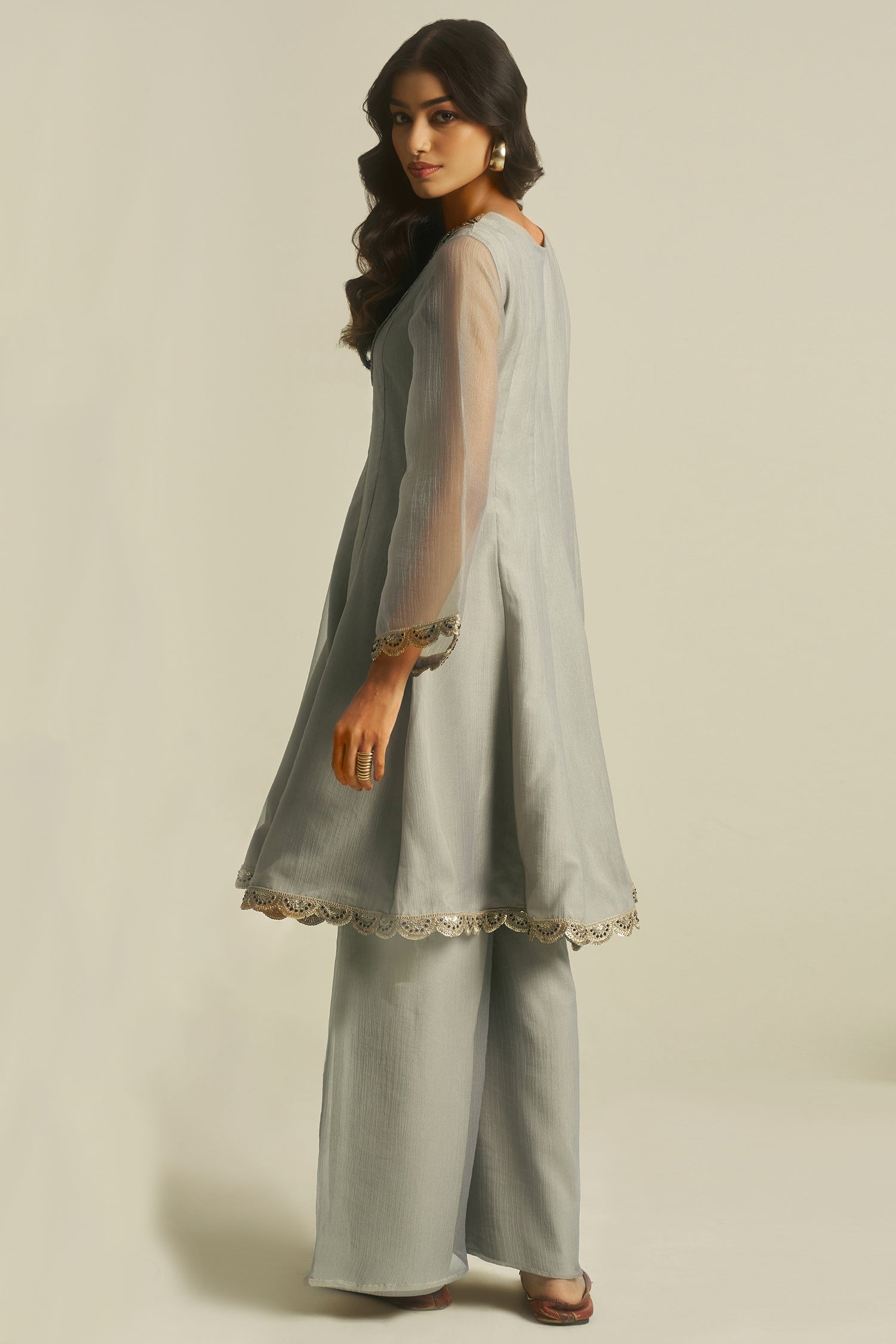 Dove Grey Tissue Sequinned Kurti with Bottom