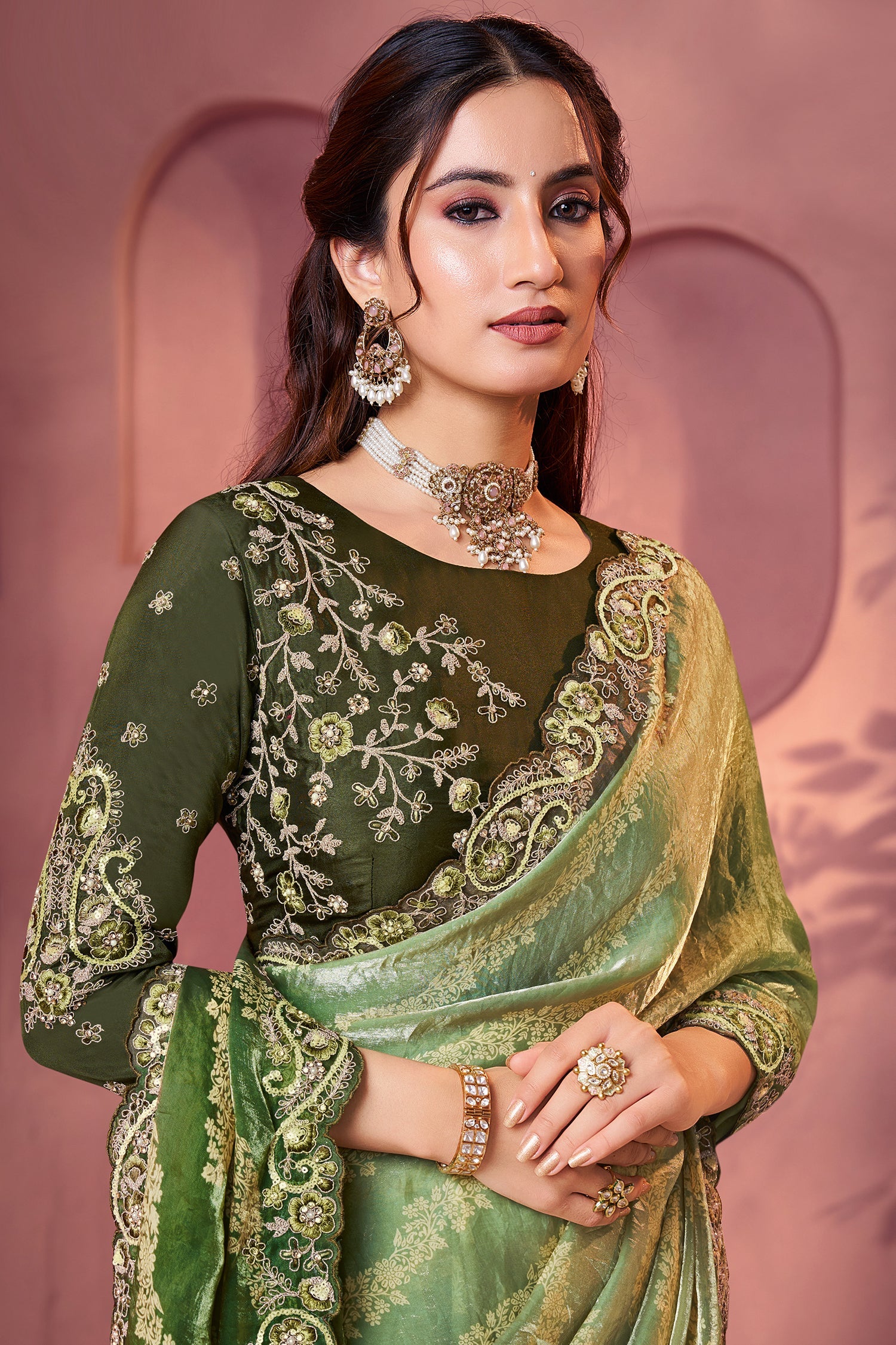Blouse Color: Green Blouse Fabric: Satin-Silk
