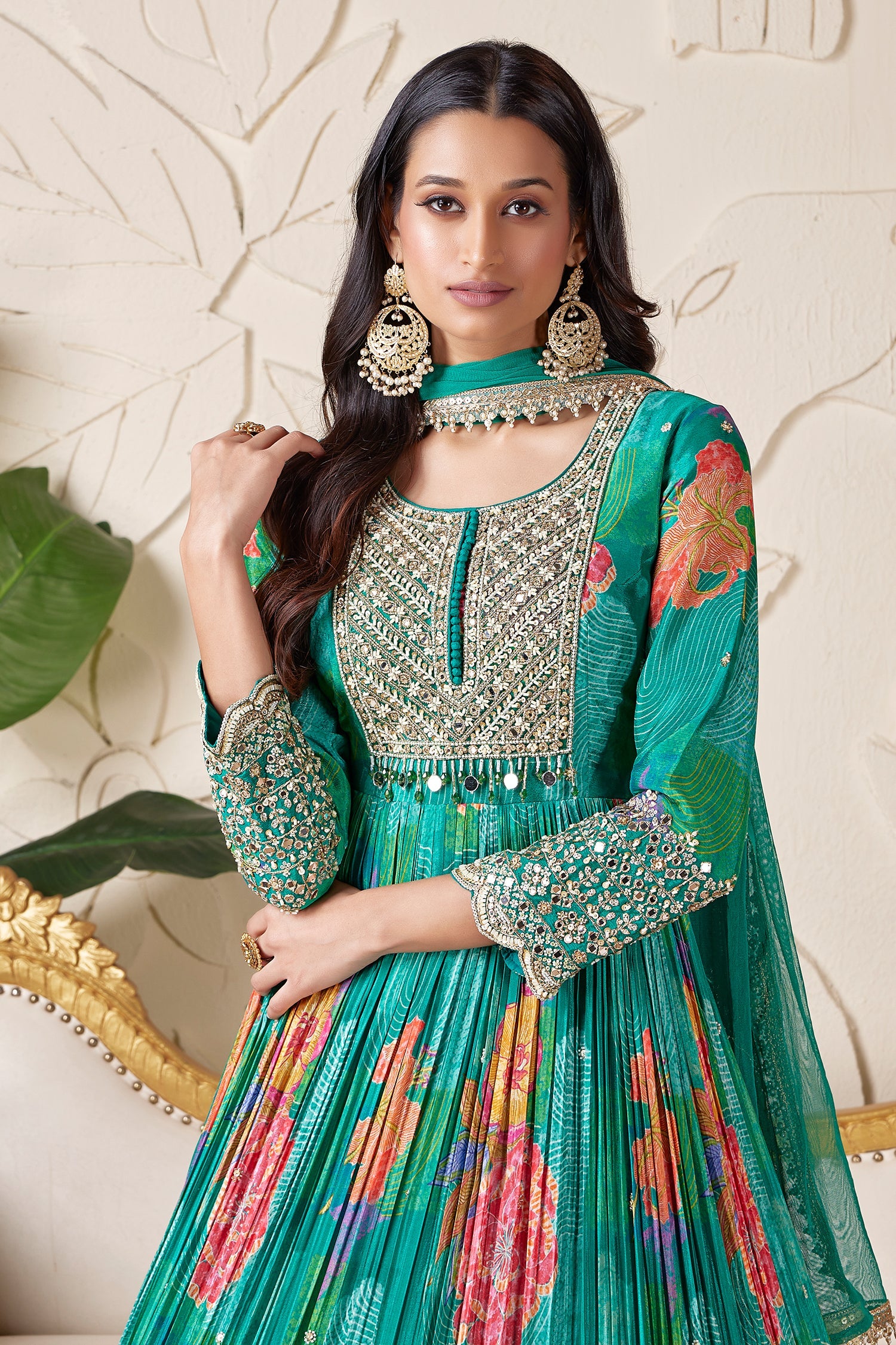 Fabric: Chinon Work: Floral-Print, Sequins, Cutdana, Mirror, Beads