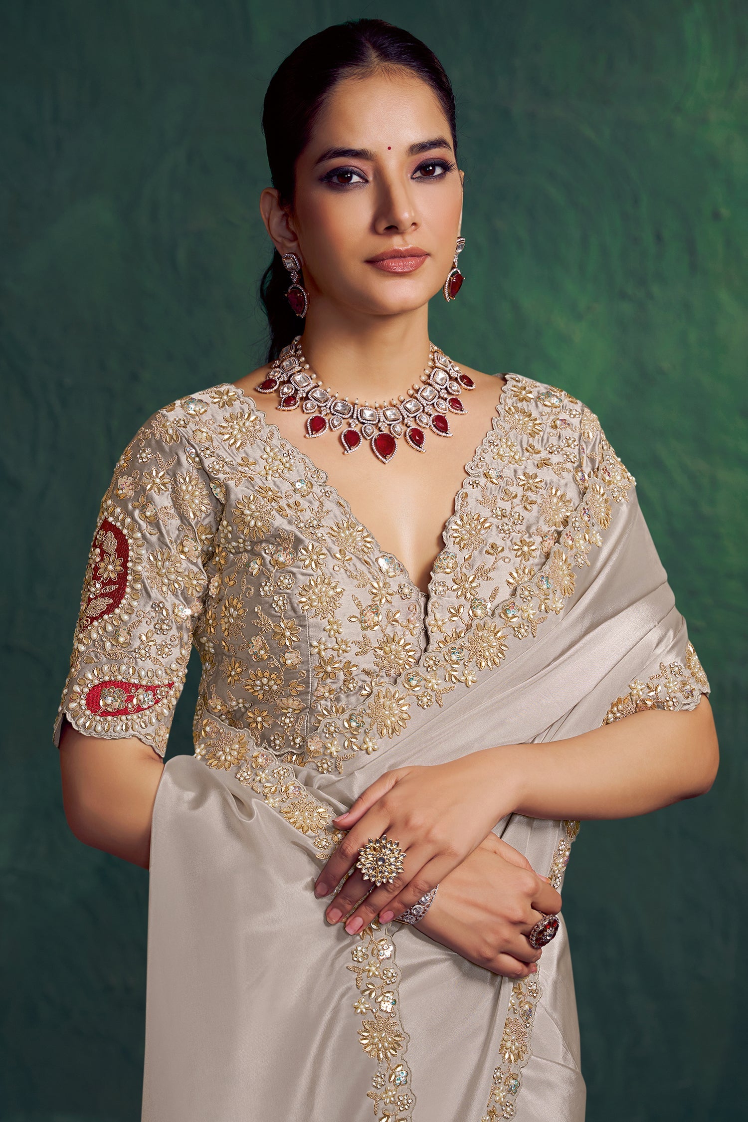 | Blouse Color: | White | Blouse Fabric: | Satin-Silk |