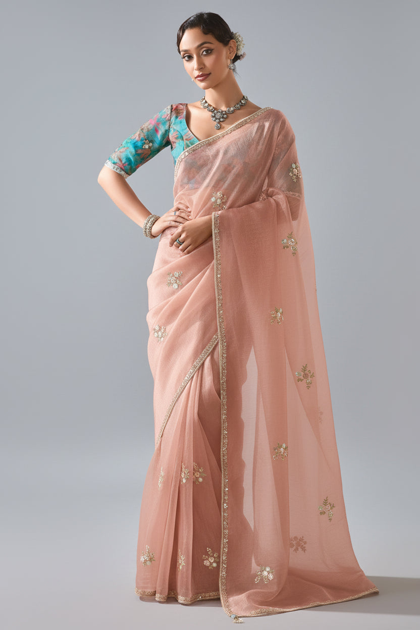 Fabric: Organza, Tissue Work: Embroidery, Lace