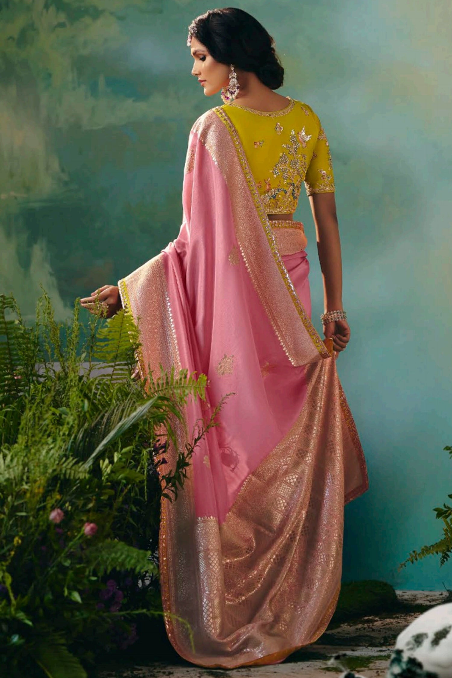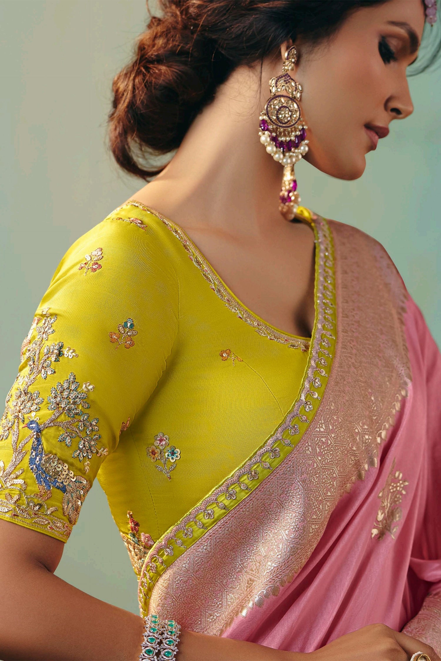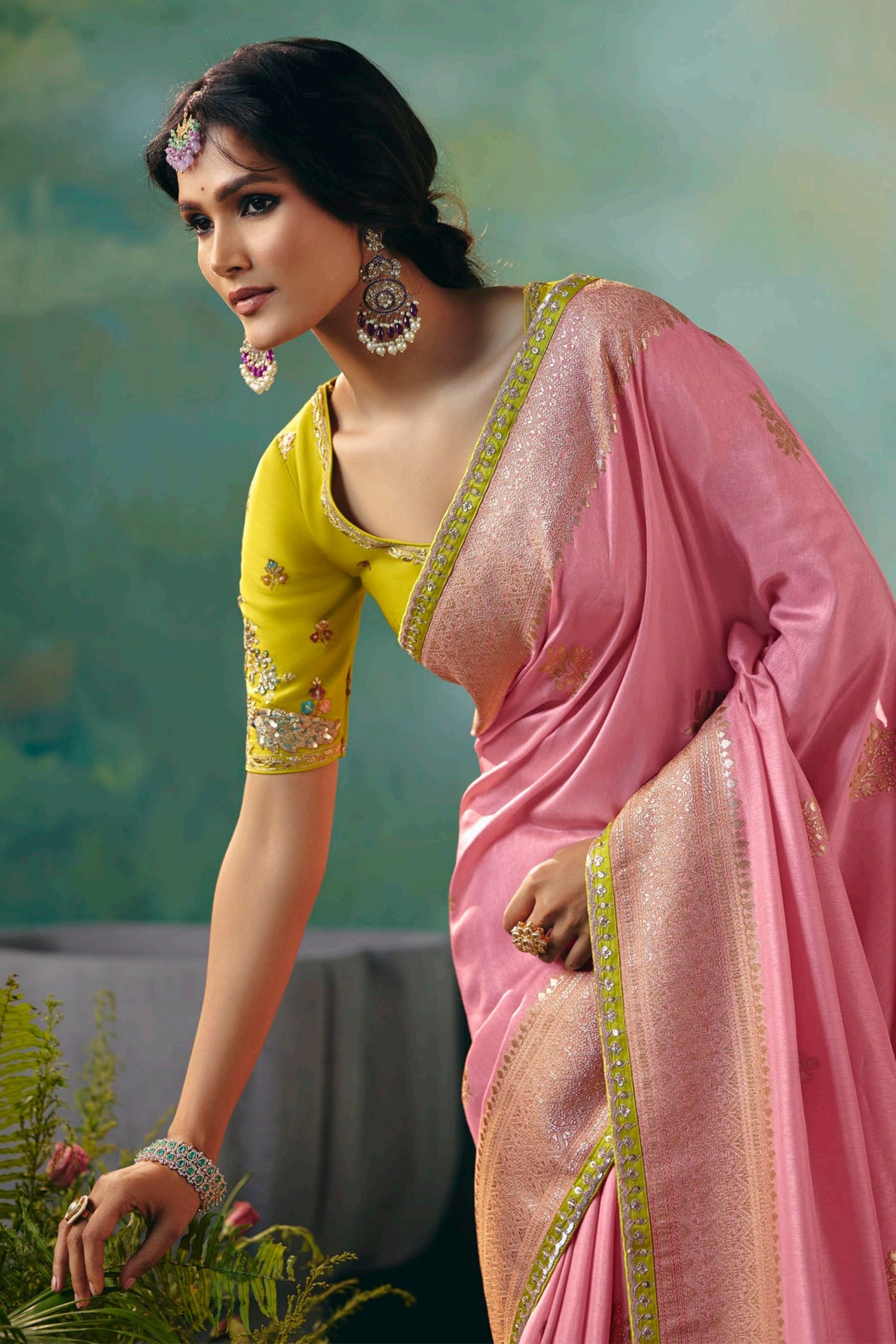 Elevate your ethnic wardrobe with this Light Pink Silk Viscose Saree, meticulously designed with refined weaving details.