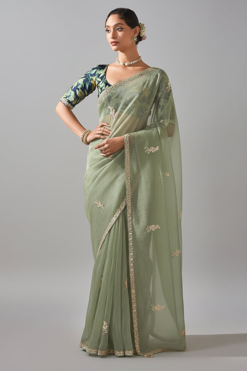 Fabric: Organza, Tissue Work: Embroidery, Lace