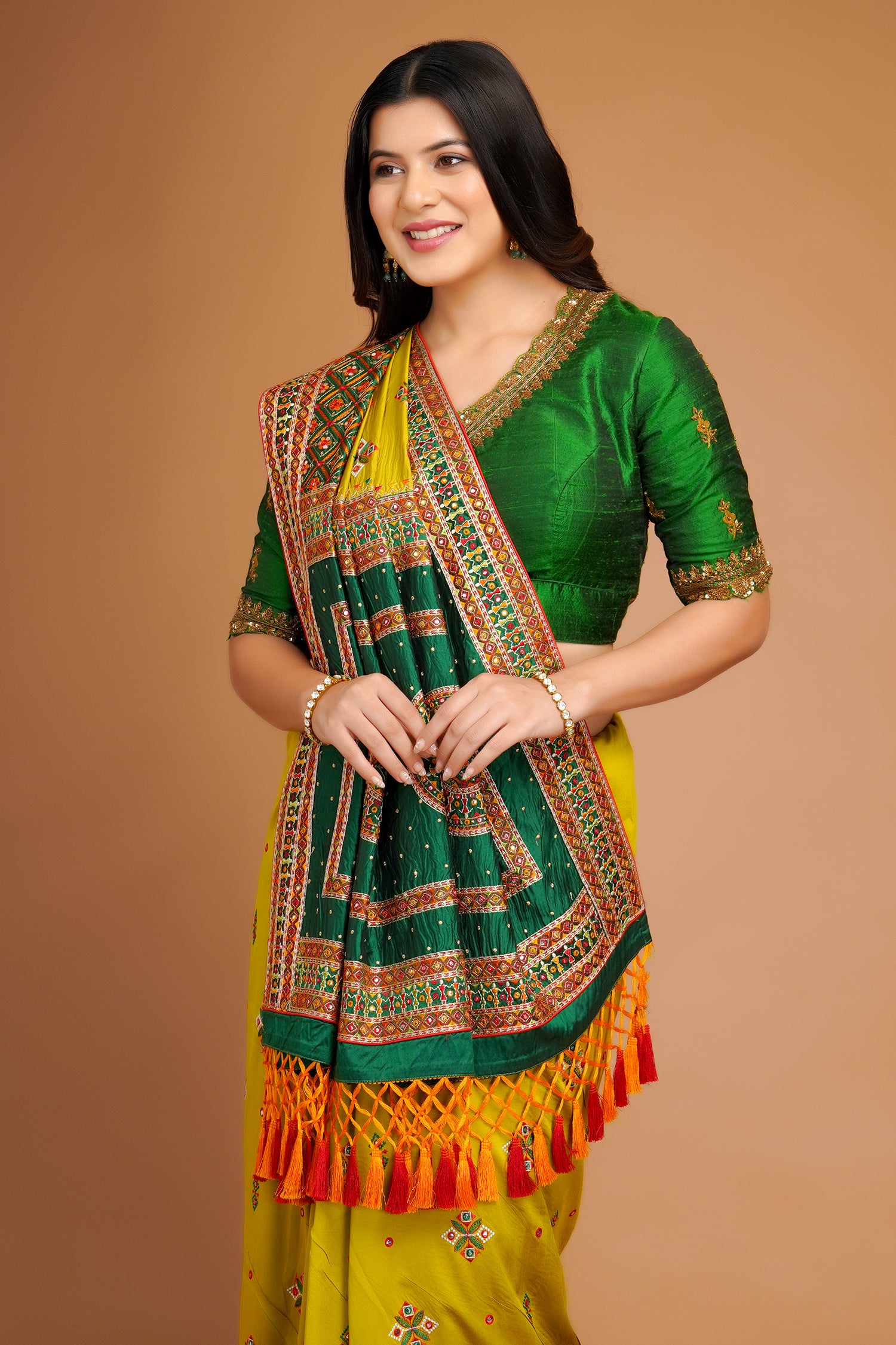 This Olive Green Silk Saree embodies understated elegance with its rich tone and smooth, graceful drape. The broad embroidered border adds a striking touch of craftsmanship and festive charm. Finished with delicate tassels, it brings a playful yet refined detail to the pallu. Ideal for weddings, festive gatherings, and special occasions. Style it with statement jewelry for a sophisticated look.