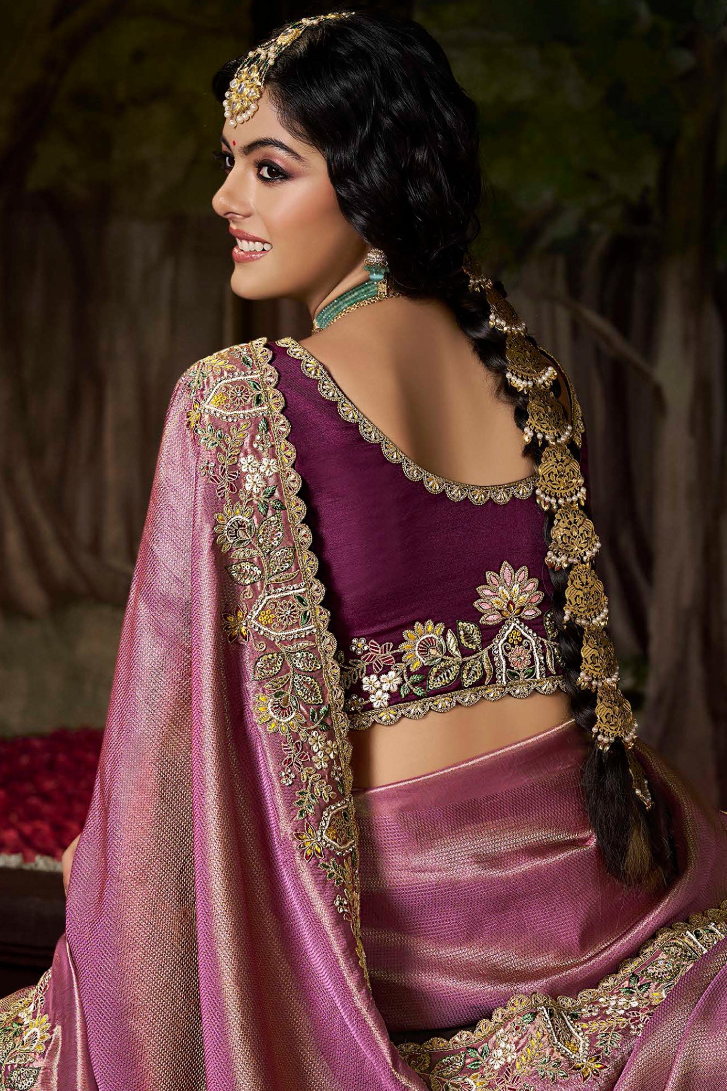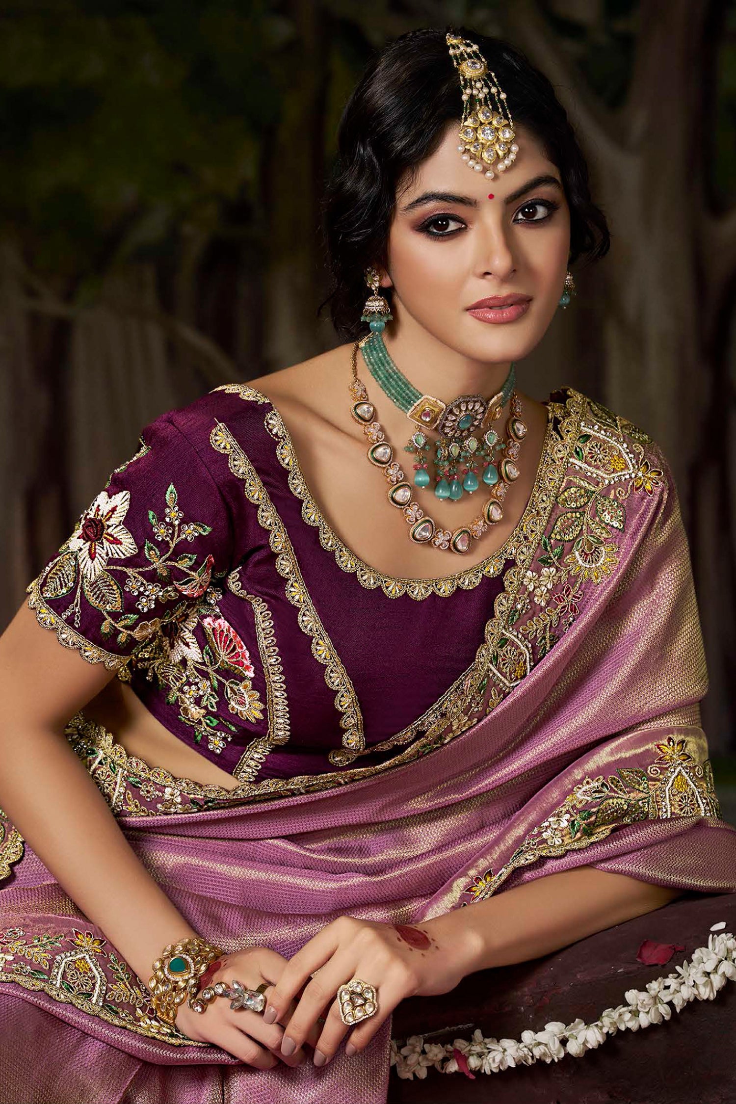 This Orchid Purple Silk Woven Saree features a stunning blend of elegance and tradition. The saree is beautifully adorned with an embroidered border, adding a refined and graceful look. Golden highlights throughout the design give it a luxurious and festive appeal. The smooth silk fabric ensures a comfortable and rich drape. Perfect for weddings, festive occasions, and celebrations, it enhances your style with a regal touch. This saree is an ideal choice for making a sophisticated statement.