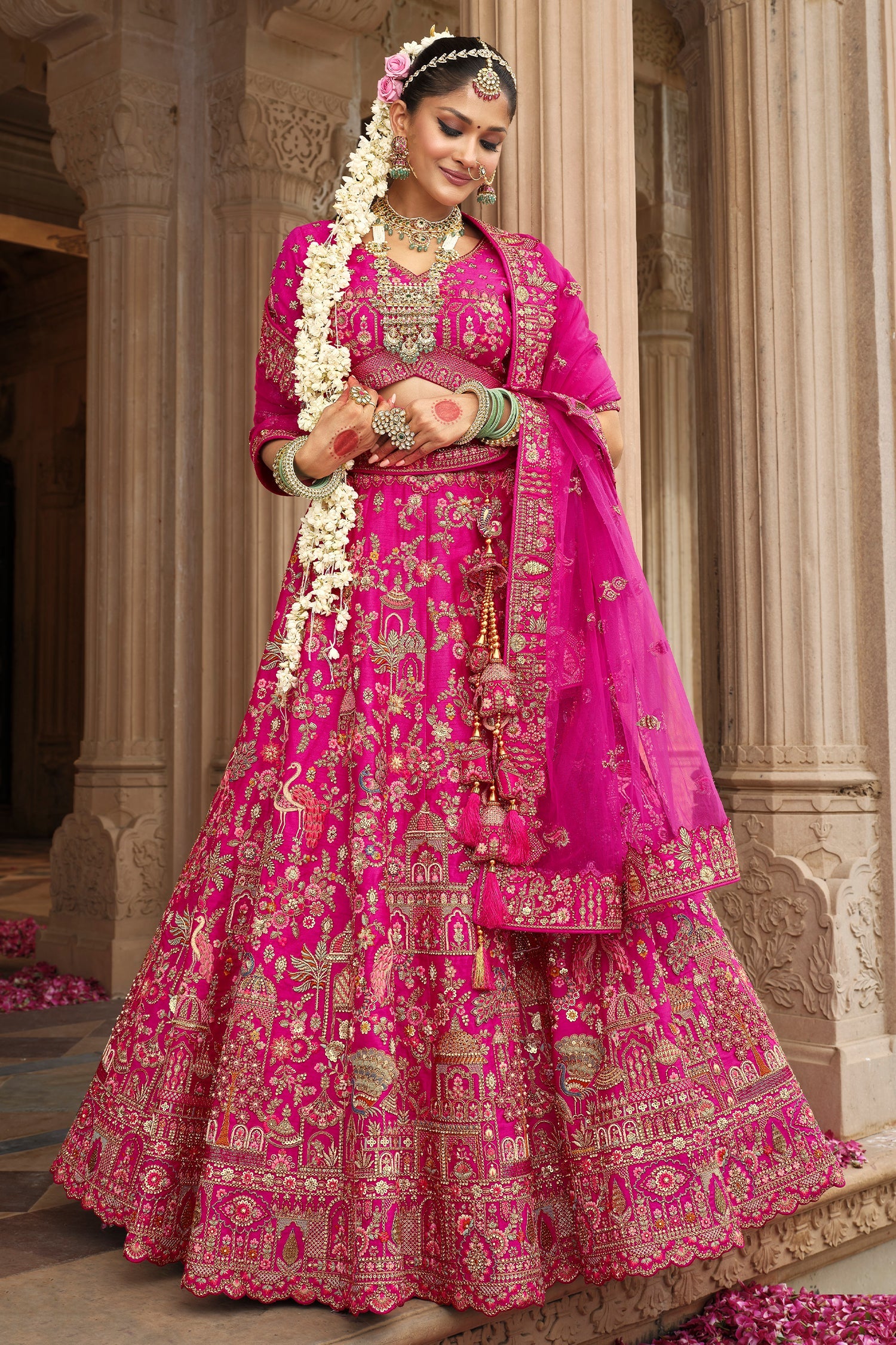 Dupatta Color: Pink Dupatta Fabric: Net
