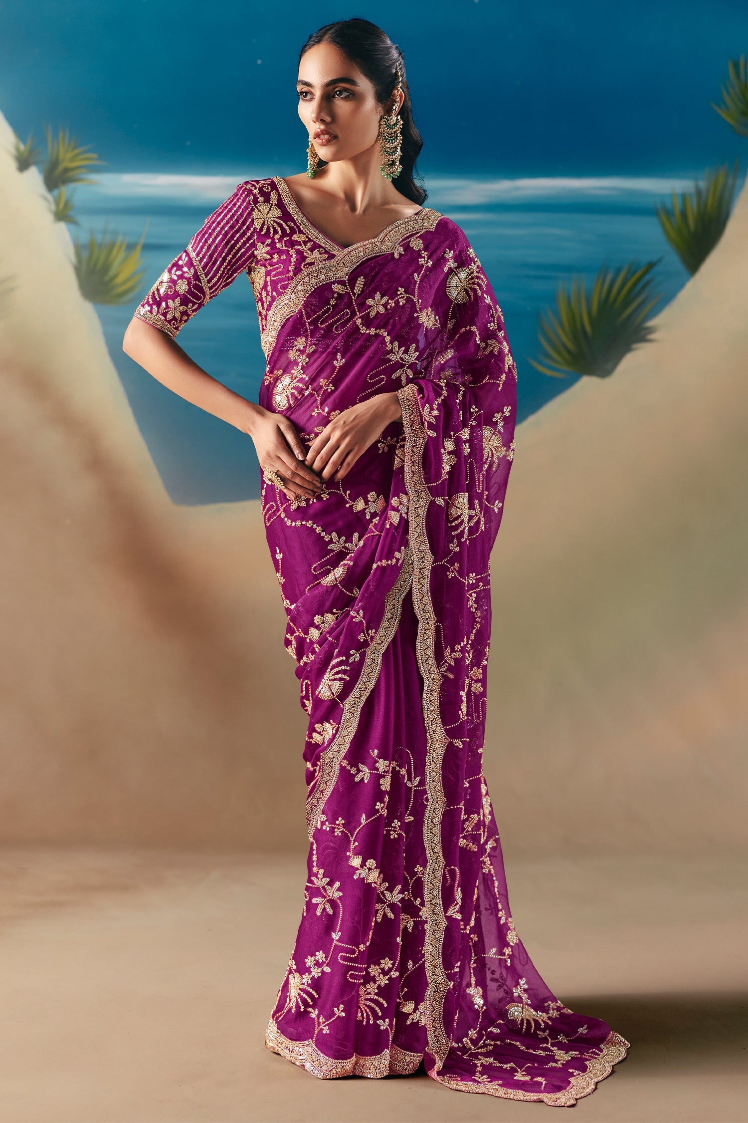 Blouse Color: Purple Blouse Fabric: Tissue, Organza