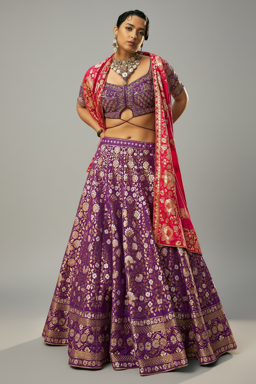 Product Code=CCGF1334 Color=Purple Fabric=Silk Work=Weaving Dupatta Color=Purple Dupatta Fabric=Silk Blouse Color=Pink Blouse Fabric=Silk Look=Traditional Product Types=Unstitched Time to Dispatch=10 to 15 Working days